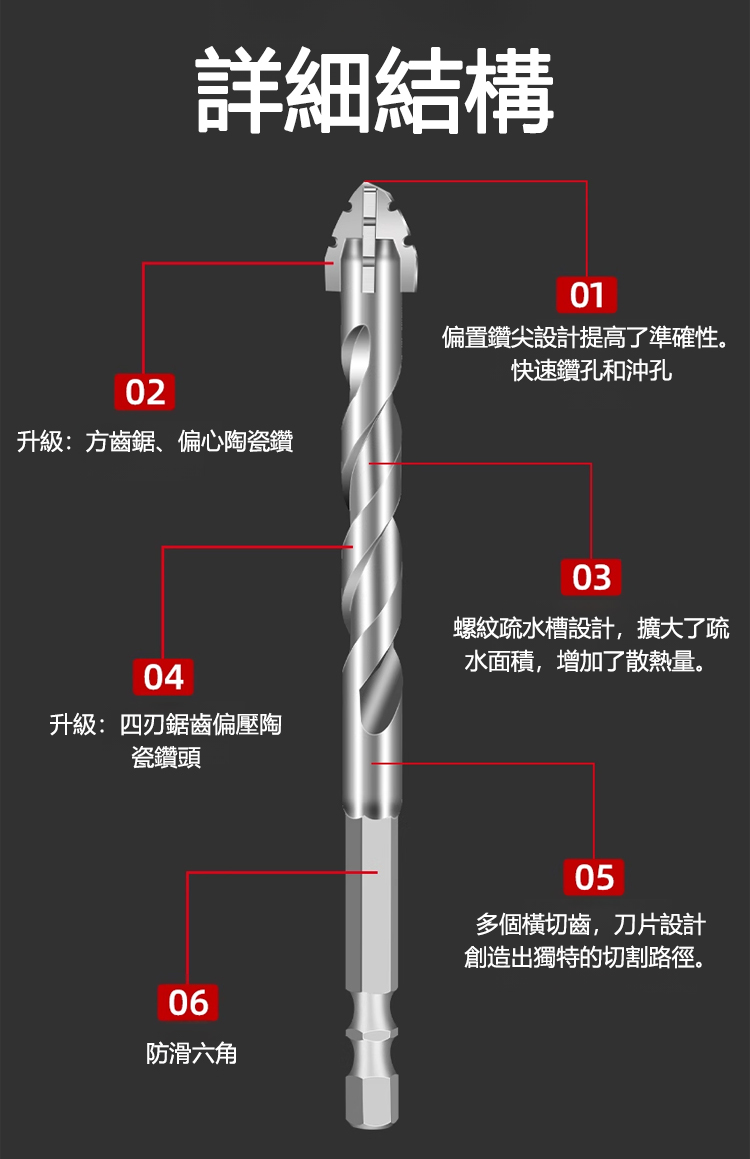 四刃鋸齒陶瓷鑽頭,高速精準還耐磨