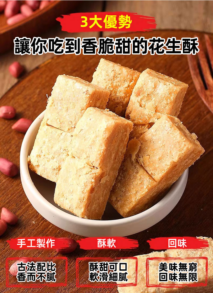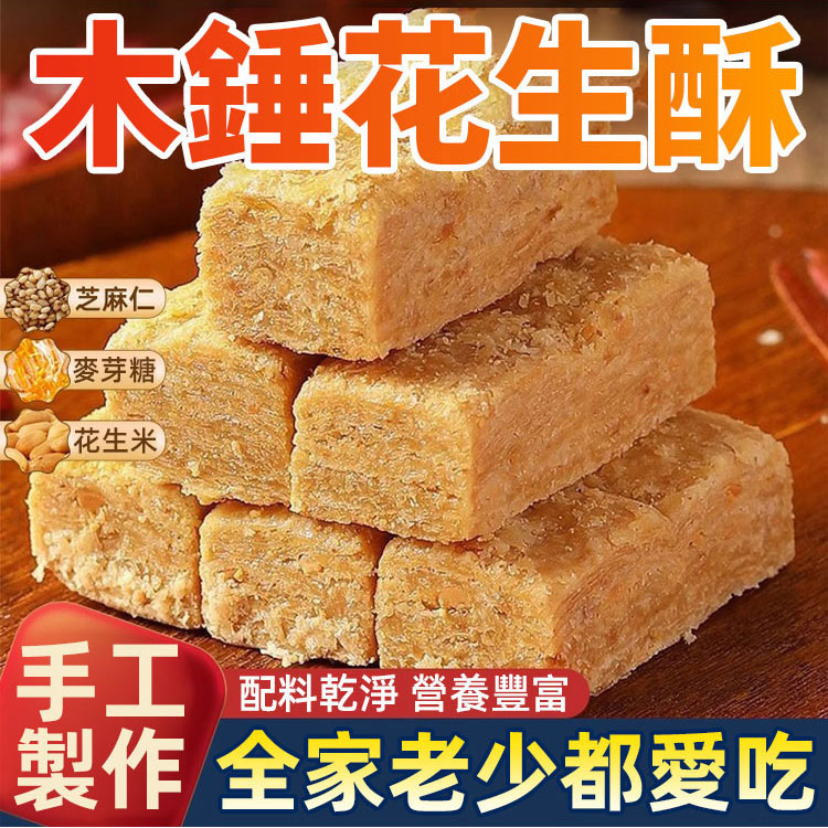 0蔗糖傳統老式木錘花生酥,好吃不胖還養生