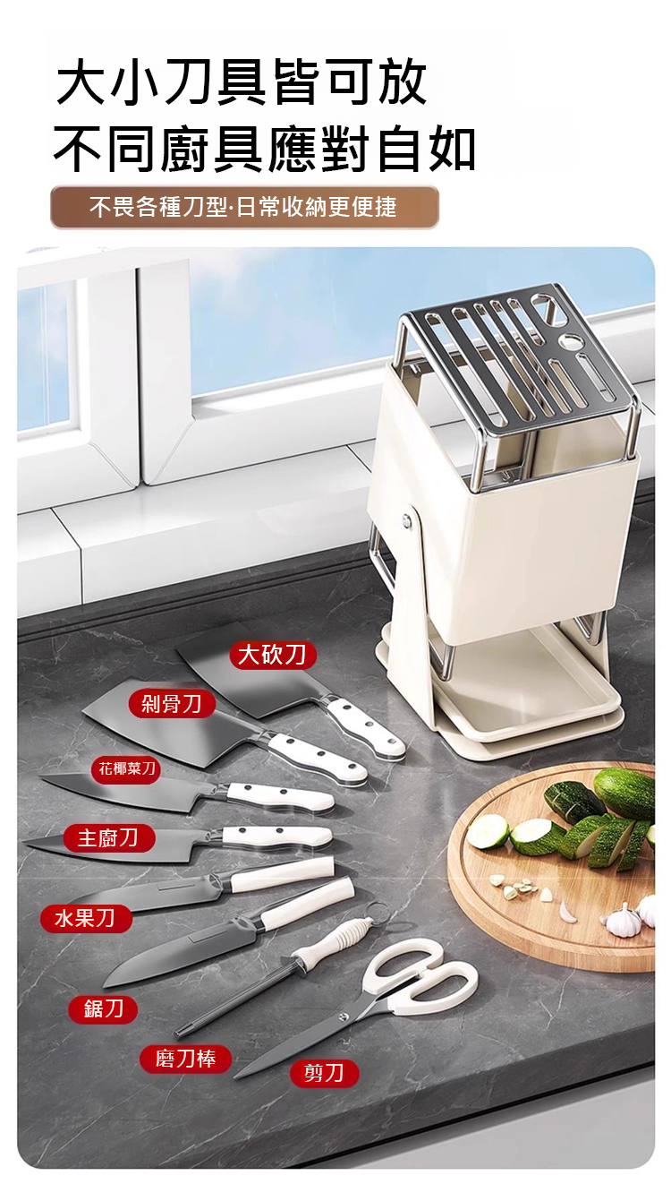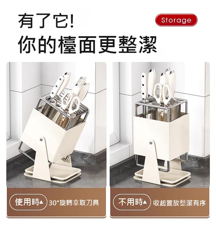 可旋轉廚房收納不銹鋼刀架